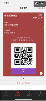 ① 受け取りを指定した公演当日会場付近に到着したら、アプリで「会場にチェックイン」よりチェックイン
